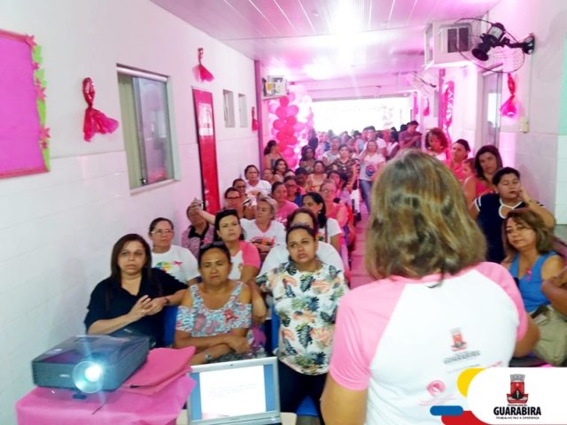 A Secretaria da Saúde da Prefeitura de Guarabira, por meio do Centro de Referência da Saúde da Mulher e da Criança, promoveu na manhã desta segunda-feira (1/10), a abertura da campanha Outubro Rosa 2018 no município. Na ocasião foram realizadas ações em saúde, como verificação de pressão arterial, teste glicemia, sessão de auriculoterapia através do NASF, inscrição de encaminhamento para exame de mama, além de uma palestra ministrada pela coordenadora de atenção básica em saúde Fernanda Macedo, que abordou acerca da importância do diagnóstico precoce e da prevenção do Câncer de Mama.